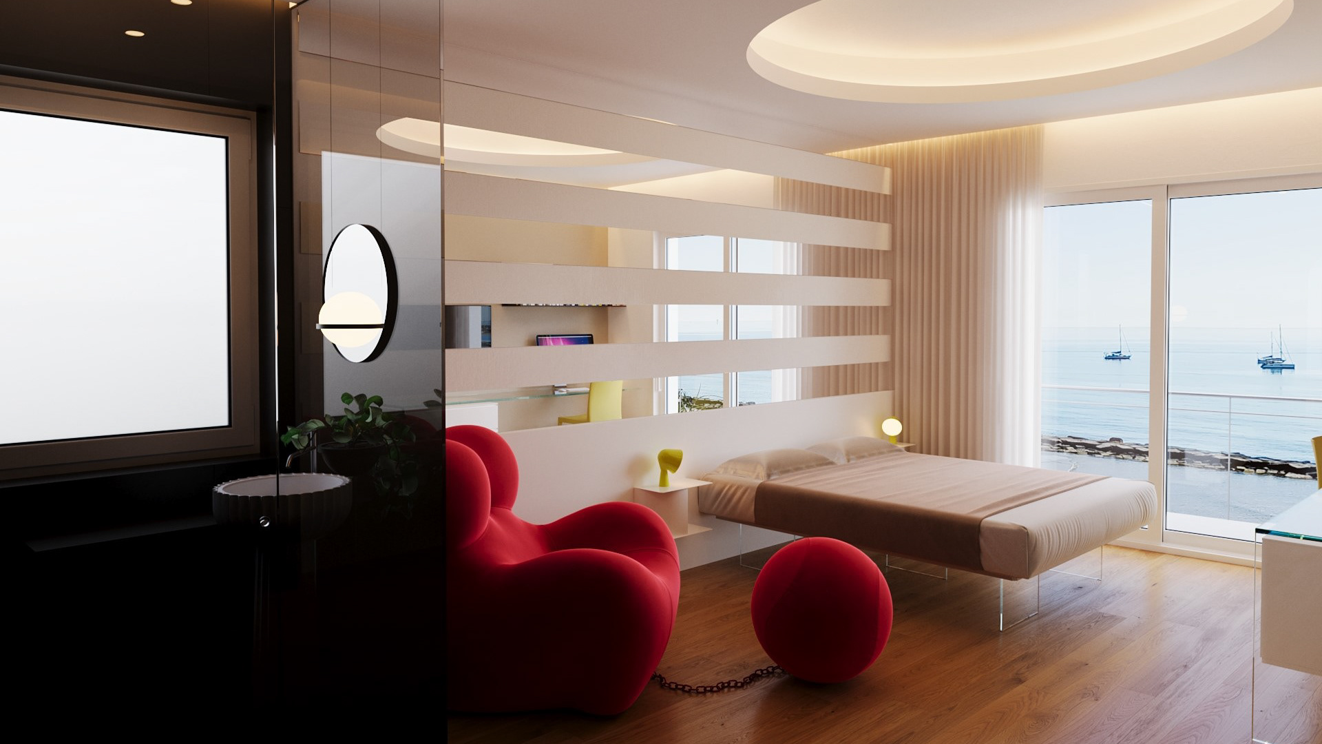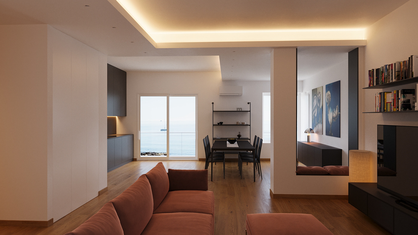 A refined seaside interior blending neo-classical elegance with a modern sensibility. Soft lighting, warm textures, and balanced proportions create an inviting atmosphere, while contemporary details bring a fresh and timeless character to the space.
