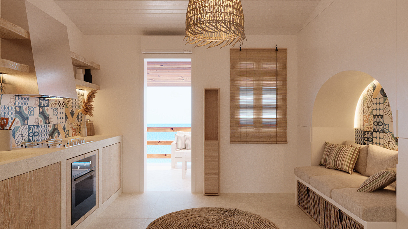 A modern interpretation of Mediterranean living, where warm materials, soft lighting, and organic textures create a relaxed and welcoming atmosphere. Clean lines and subtle coastal accents bring balance, comfort, and timeless character to the interior.
